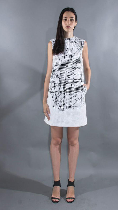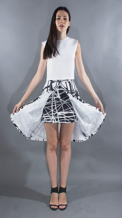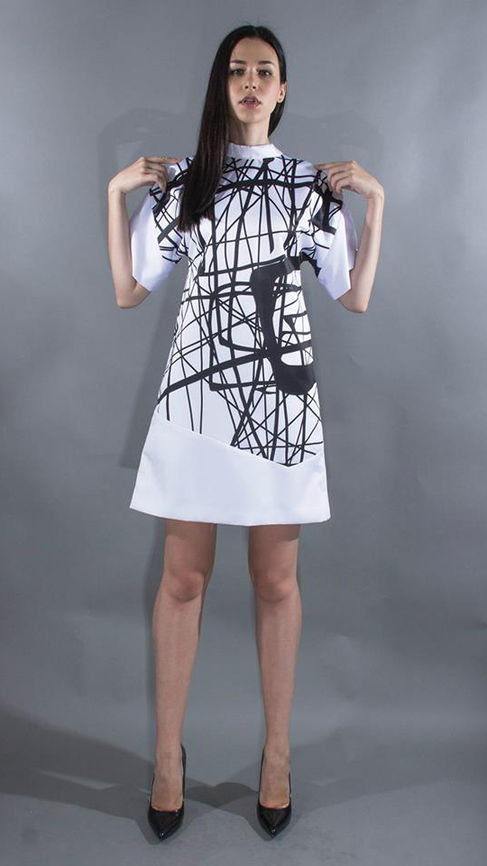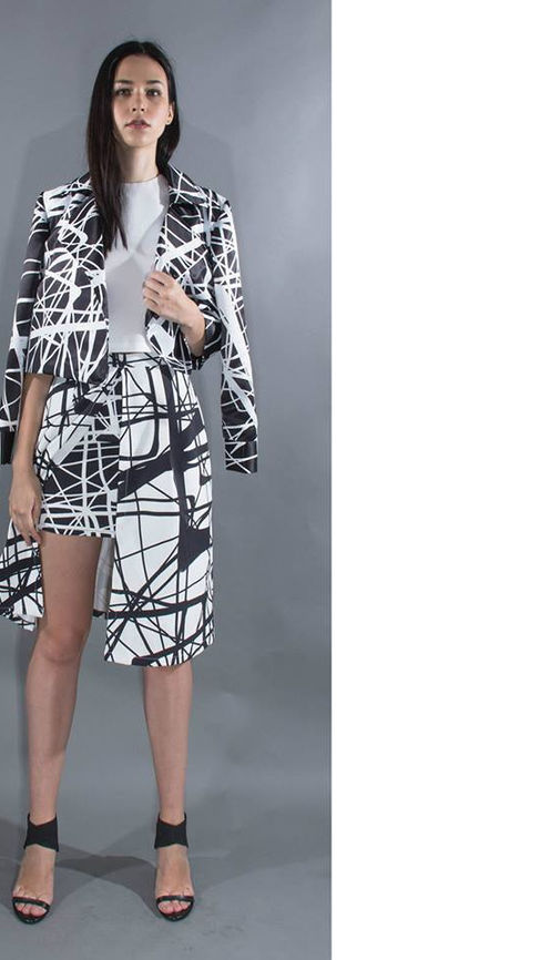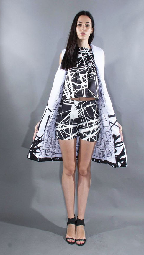 Immersed in the enigmatic world of a surrealist visionary, this capsule captivates with its fusion of abstract black and white digital prints, drawn from the rich tapestry of his thought-provoking oeuvre. It's a collection that mirrors the essence of a woman both strong and refined, resonating through its choice of hues and audacious silhouettes.